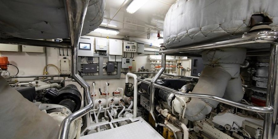 She is powered by Caterpillar engines of 1100 hp each giving her a maximum speed of 15 knots and a cruising speed of 12 knots.