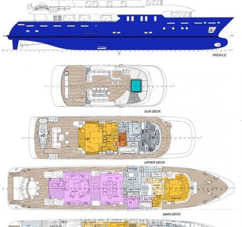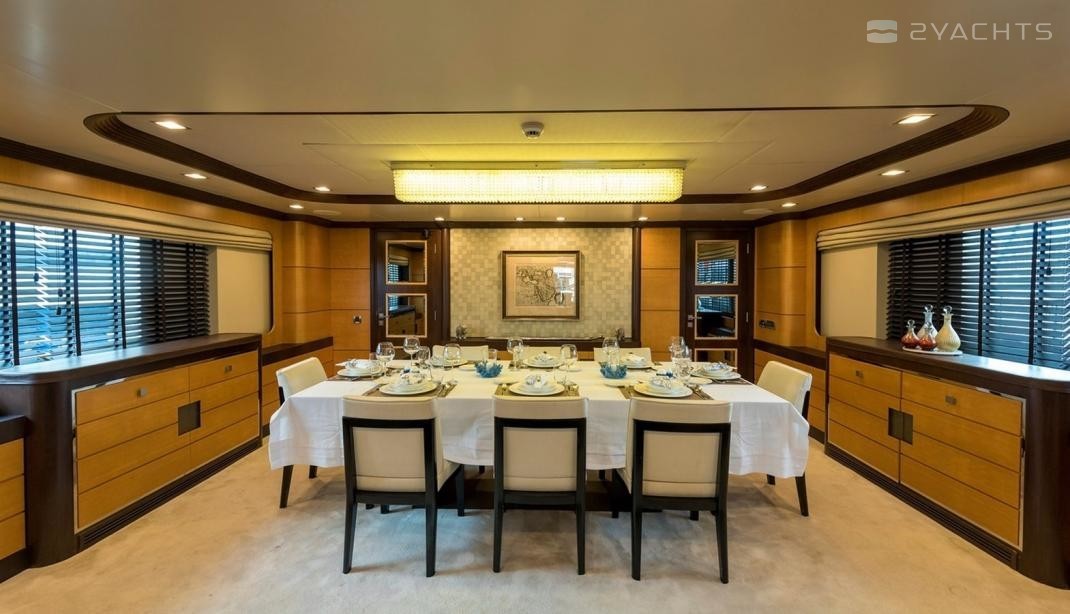 The motor yacht can accommodate 12 guests in 5 cabins with an interior design by H2 Yacht Design and an exterior design by Endaze Marine Engineering.