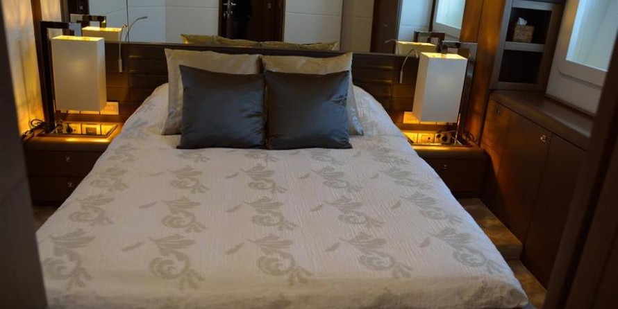 The motor yacht can accommodate 8 guests in 4 cabins.