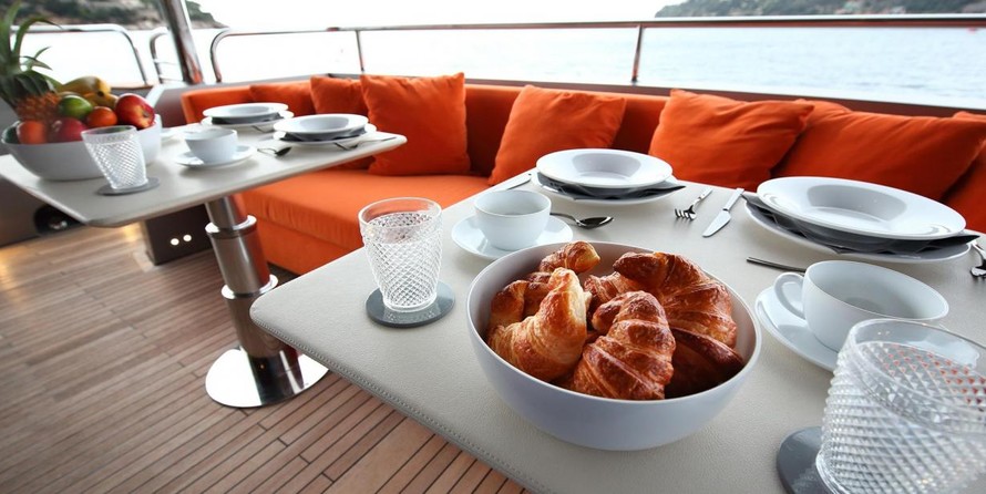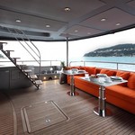 The motor yacht can accommodate 8 guests in 4 cabins with an interior design by Lazzarini Pickering Architects and an exterior design by Sunseeker International Limited.