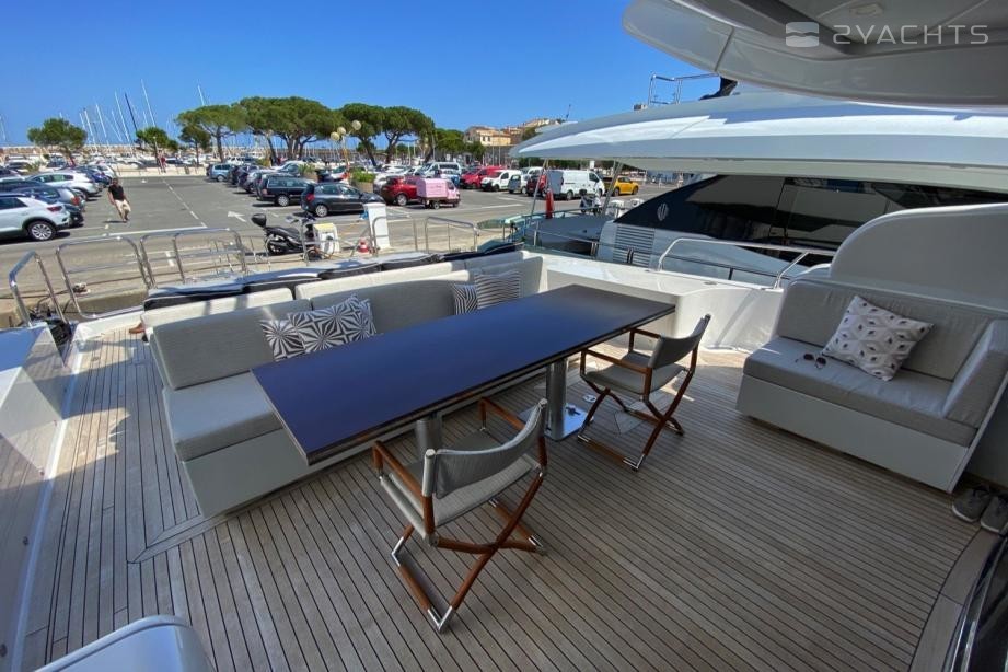 The motor yacht can accommodate 8 guests in 4 cabins. The yacht was designed by Andrea Bacigalupo.
