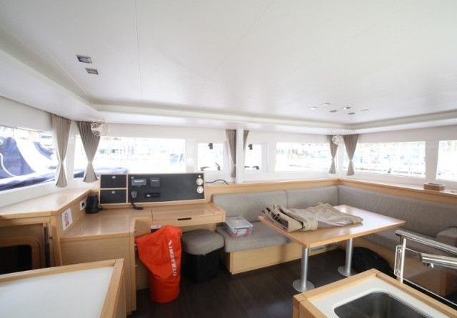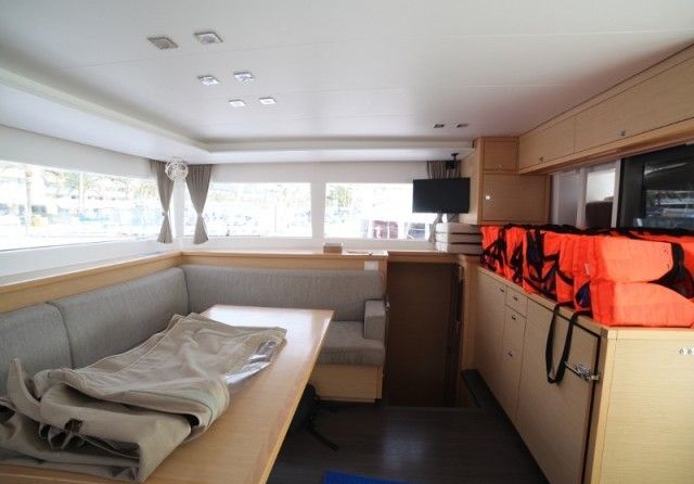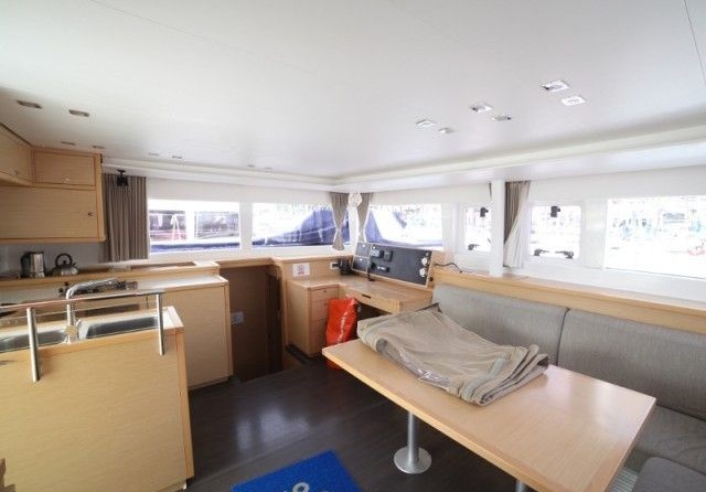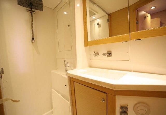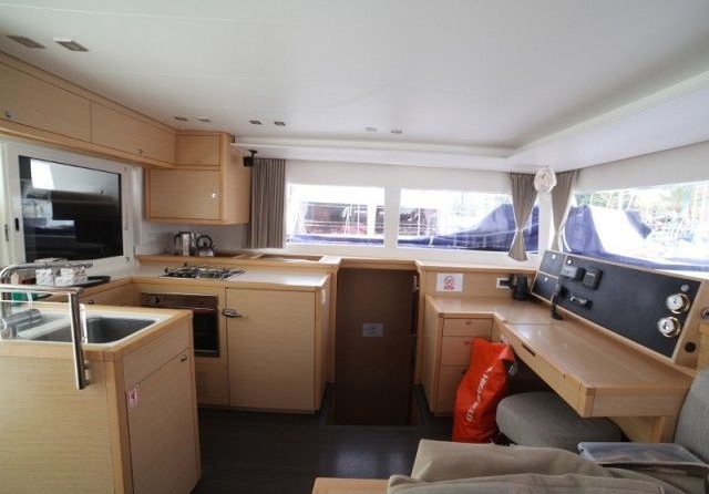 Boat equipment features rolling mainsail, generator, bimini and outside gps plotter. It also boasts a flat screen tv, heating, air conditioning, an audio system and outside speakers. The fully-equipped galley includes a freezer, oven, cooker, sink and kitchen utensils.