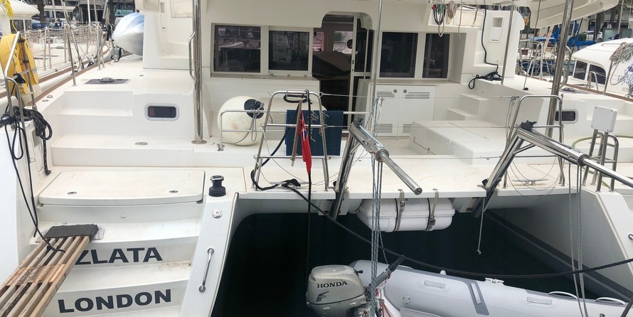 6-cabin catamaran Lagoon 450 F - Zlata was built in 2013, and it is docked in Marina Solila, Montenegro.