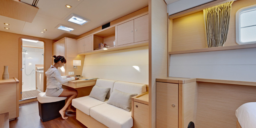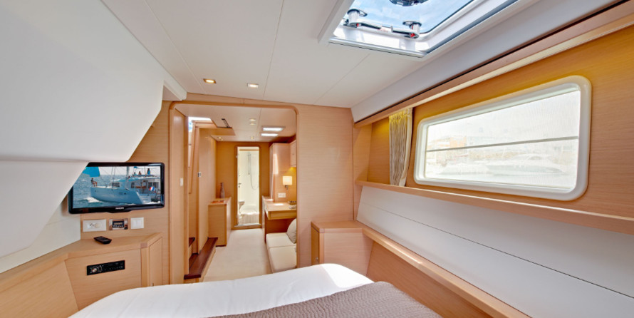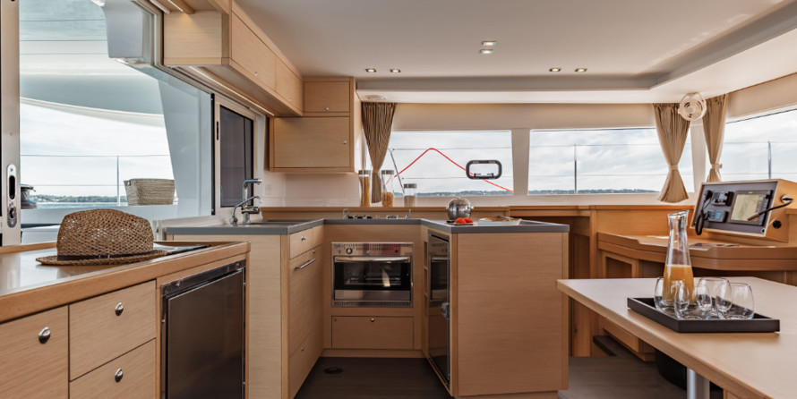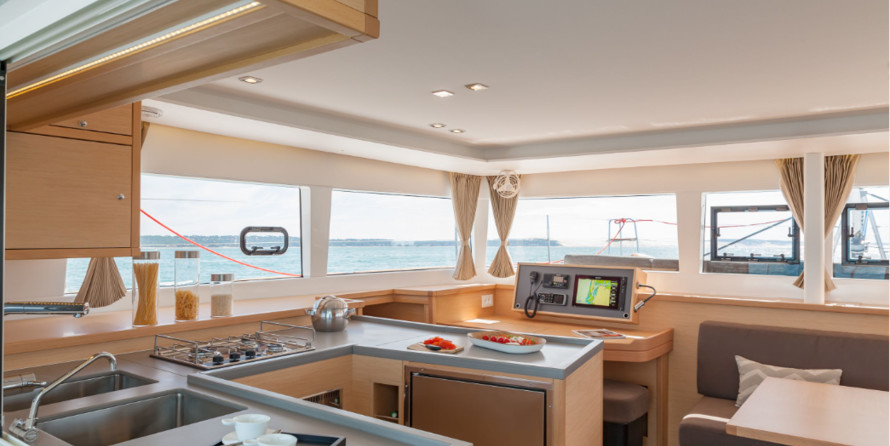 Boat equipment features classical mainsail, generator, bimini and outside gps plotter. It also boasts a flat screen tv, heating, air conditioning, an audio system and dvd player. The fully-equipped galley includes a freezer, oven, cooker, sink and kitchen utensils.
