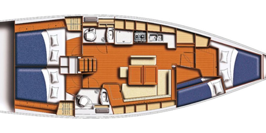 Mazurka can accommodate up to 10 people in 3 double cabins, 1 double cabin with a bunk bed and a saloon with 2 extra beds. Pillows and blankets are included in the price.