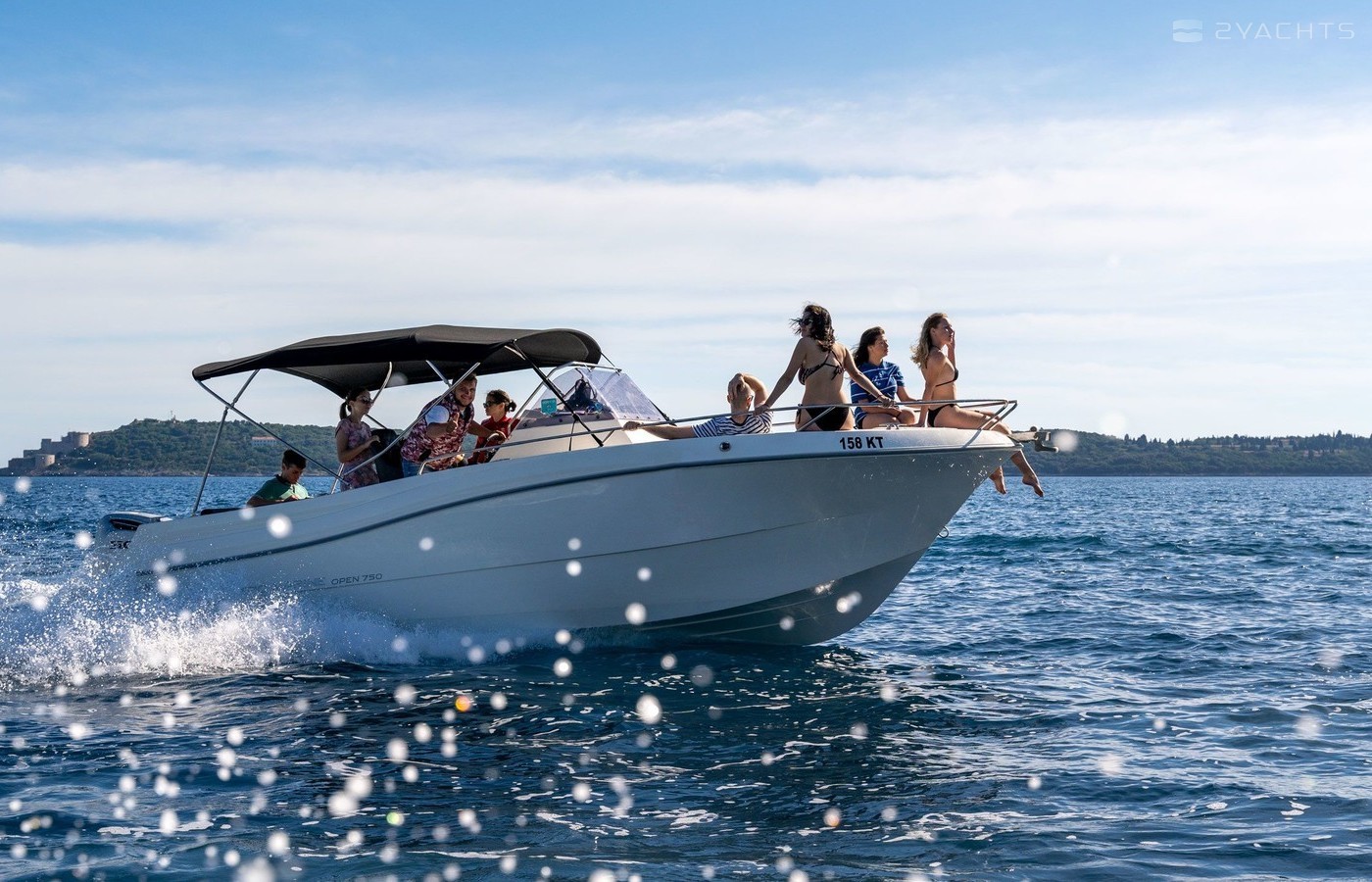 The motorboat Open is equipped with a 250hp engine.