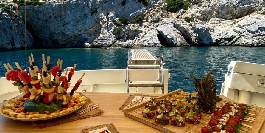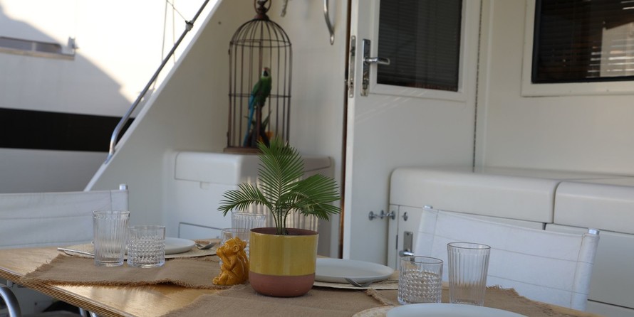 Boat equipment features radar, generator, bbq, bimini and outside gps plotter. It also boasts a flat screen tv, heating, washing machine, an audio system and dvd player. The fully-equipped galley includes a microwave, dishwasher, ice maker, freezer and coffee machine.