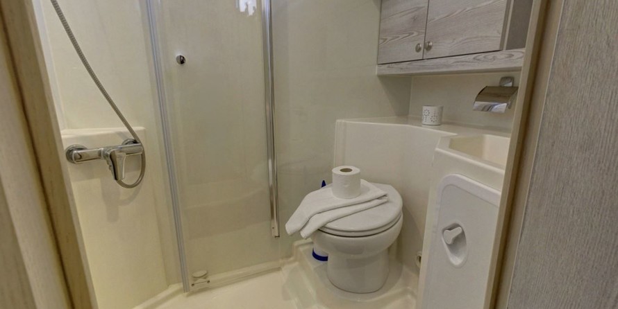 The living area of this houseboat consists of 5 cabins and accommodates 12 people. A shower is at the guests' disposal and there are 5 toilets on board.
