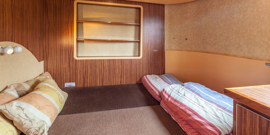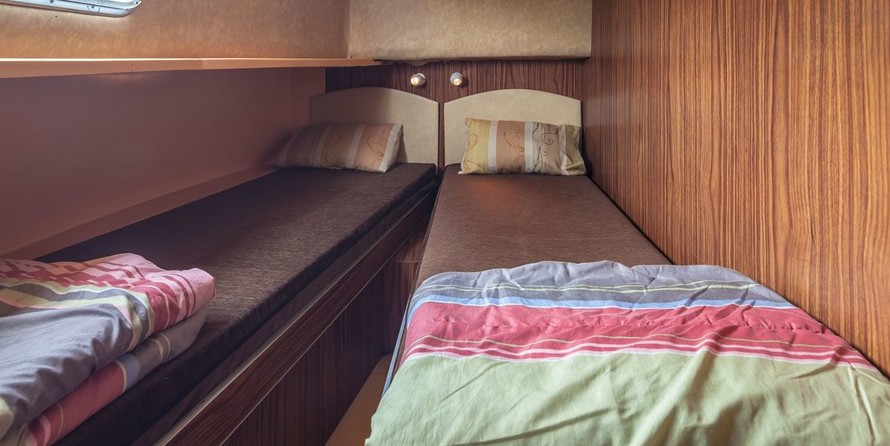 The living area of this houseboat consists of 4 cabins and accommodates 9 people. A shower is at the guests' disposal and there are 3 toilets on board.