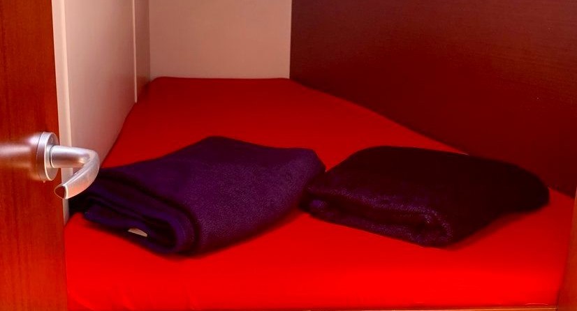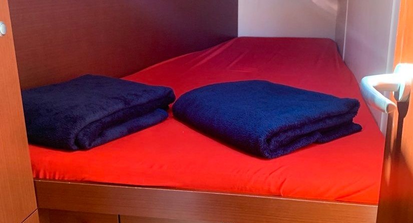 Kazhdy can accommodate up to 8 people in 4 double cabins. Pillows and blankets are included in the price.