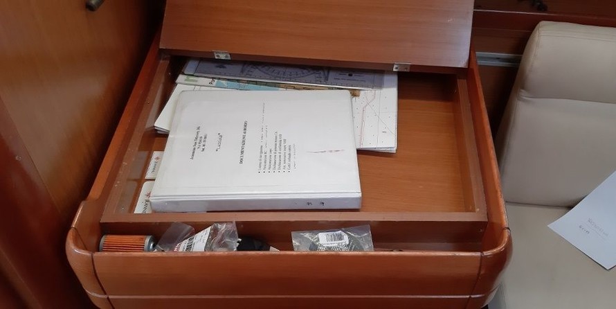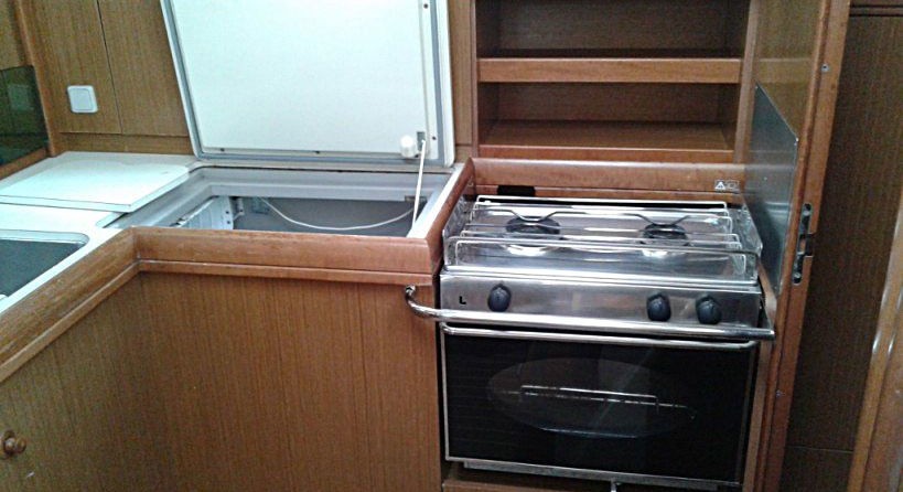 Boat equipment features classical mainsail, salon gps plotter, bimini and outside gps plotter. It also boasts an an audio system, outside speakers and inside speakers. The fully-equipped galley includes an oven, cooker, sink and kitchen utensils.