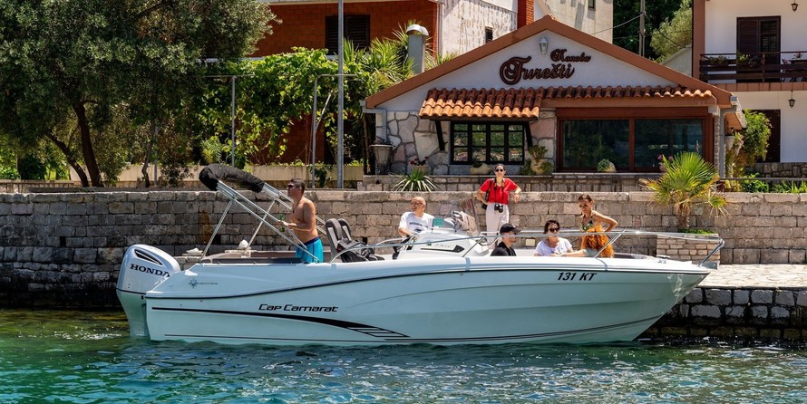 This 2019 Jeanneau Cap Camarat 7.5 - Cap Camarat is suitable for 13 people. It is docked in Port of Kotor, Montenegro.