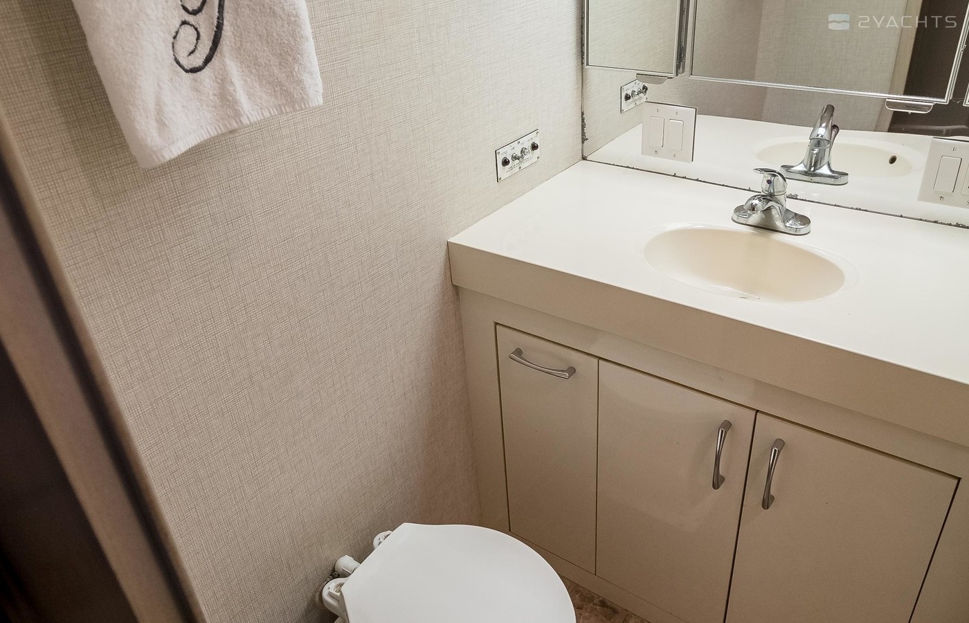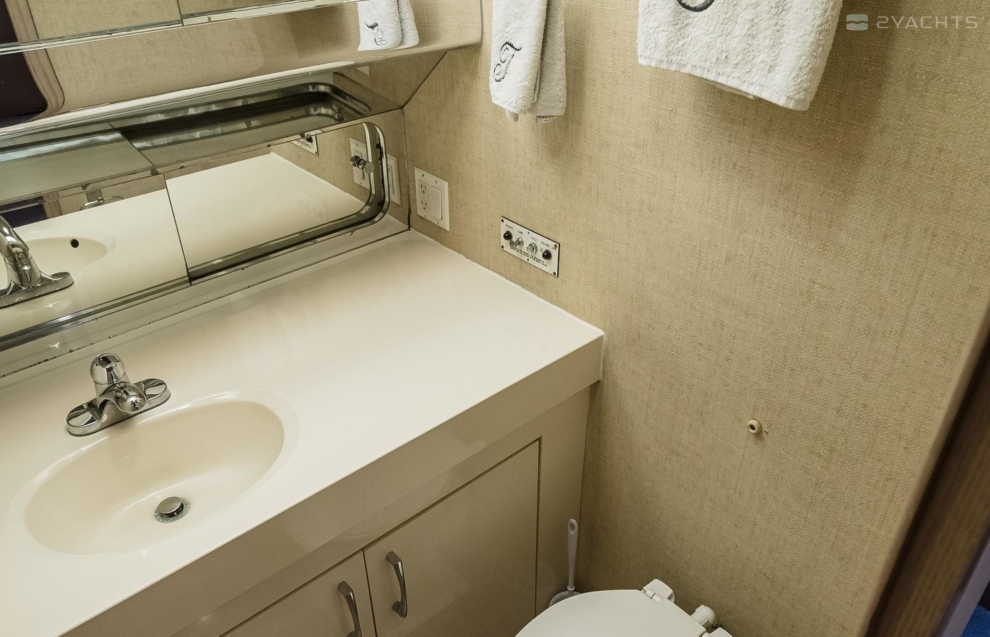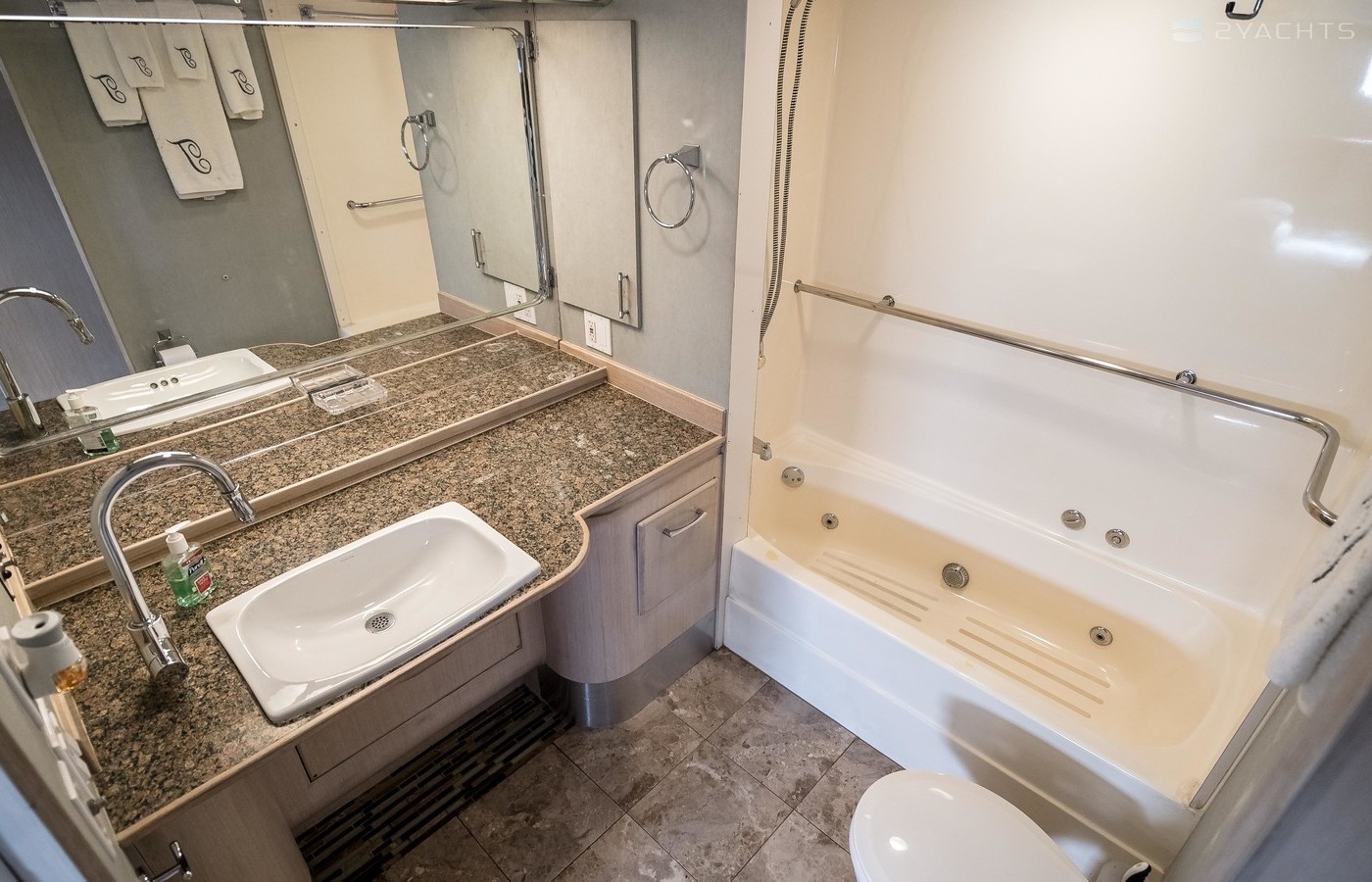 This yacht has been retrofitted to be completely wheel-chair accessible: a customized davit and ramp to the aft deck or flybridge, an elevator from the salon down to the private master, electric hospital bed with inverter and battery backup system, ceiling track hoist for the master head, etc. For someone with disabilities, this Hatteras is ready to go!