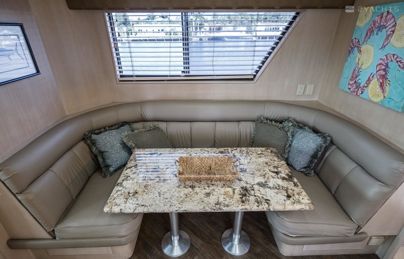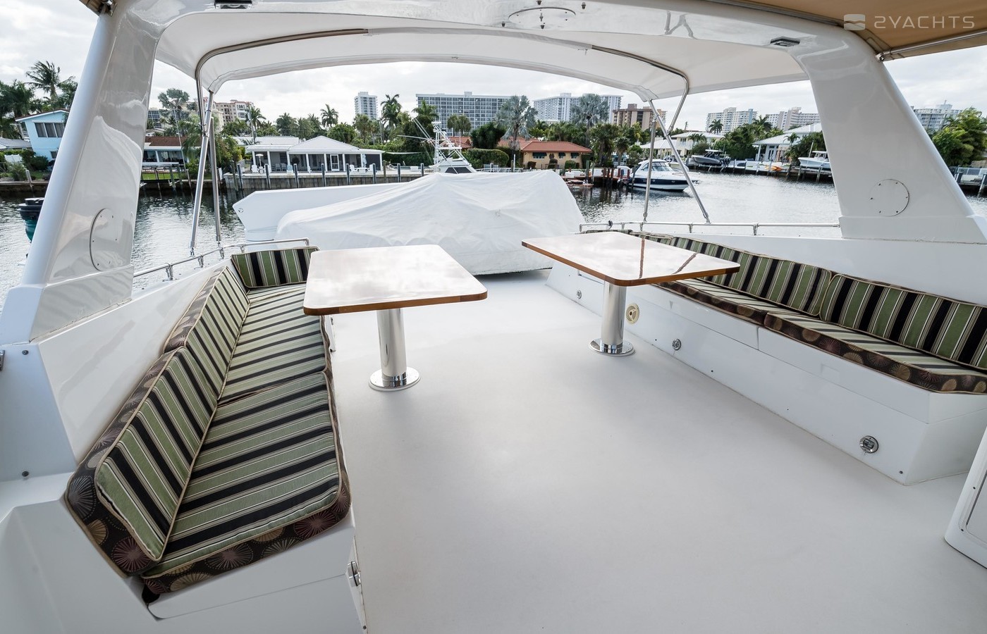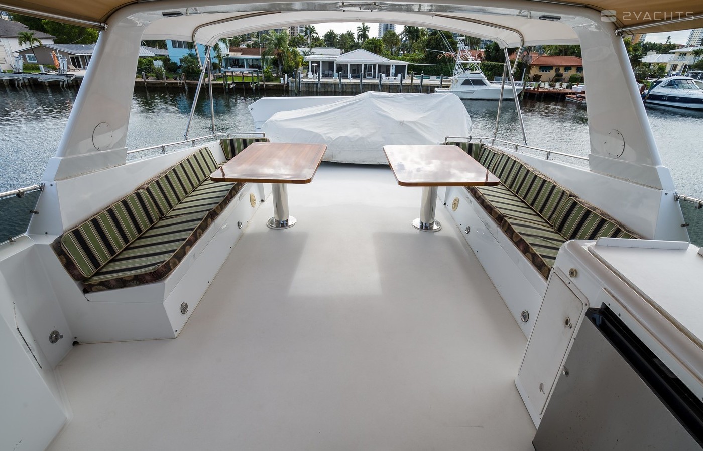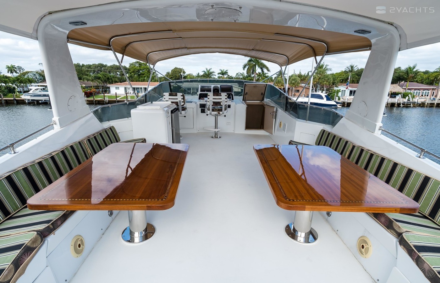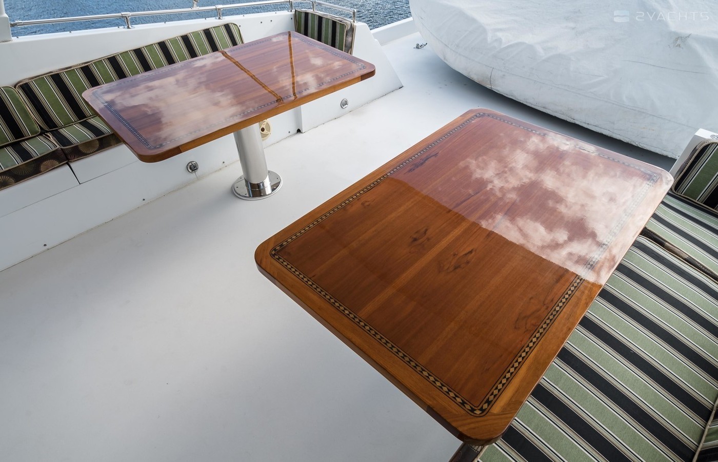 - Port/Stbd Seating with Two Large Teak Varnished Tables