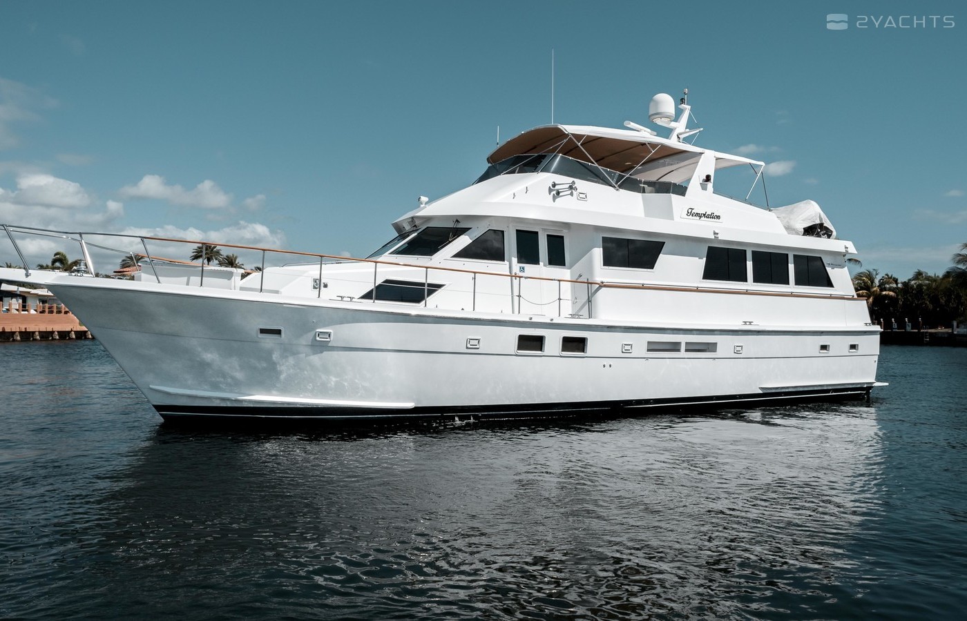 "Temptation” is a beautiful 65’ Hatteras MY 1992 with a desirable layout including the extended deckhouse, full-beam engine room, and extended & widened flybridge.