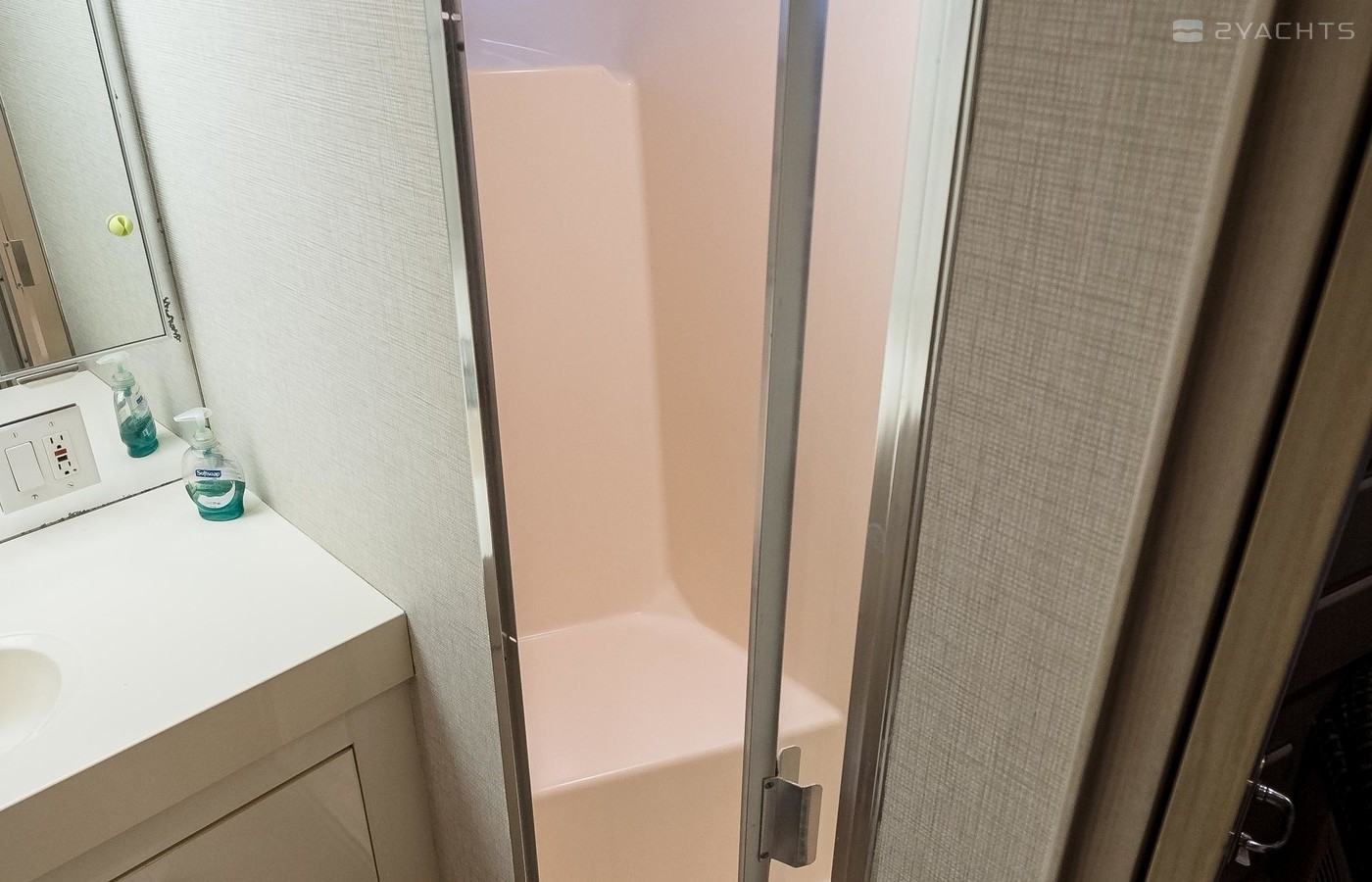 - Head with Sink, Storage, Mirror, and Shower
