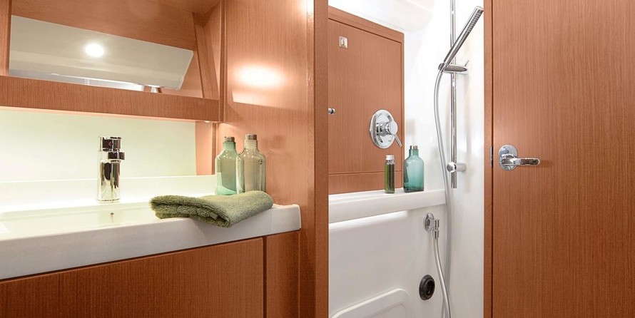 - Teak on cockpit floor, seat bases and bathing platform