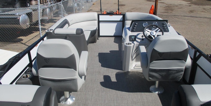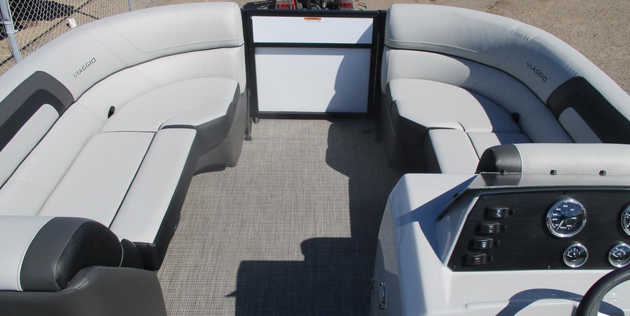 2022 Viaggio Lago 22U Quad Lounger TripletoonThis pontoon can be paired with any available 150-250HP Suzuki motor.Colors:White PanelsLeon Grayson InteriorLuna Metro FlooringBlack CanvasUpgraded Features:Full Tripletoon Package - Full Length 25' Center Tube, Lifting Strakes On Center & Outside Tubes, Sea Star Hydraulic Steering, 58 Gallon Fuel Tank, Performance SheetingSea Star Power Assist SteeringStainless Steel CupholdersCo-Captain Seat SliderRubber Rub RailPro Series Ski Tow BarStainless Steel Fold Down CleatsHelm Courtesy LightIn Rail Docking LightsHook 2-4 Fishfinder / GPS Unit