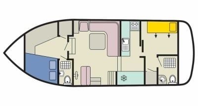 The living area of this houseboat consists of 2 cabins and accommodates 4 people. A shower is at the guests' disposal and there are 2 toilets on board.