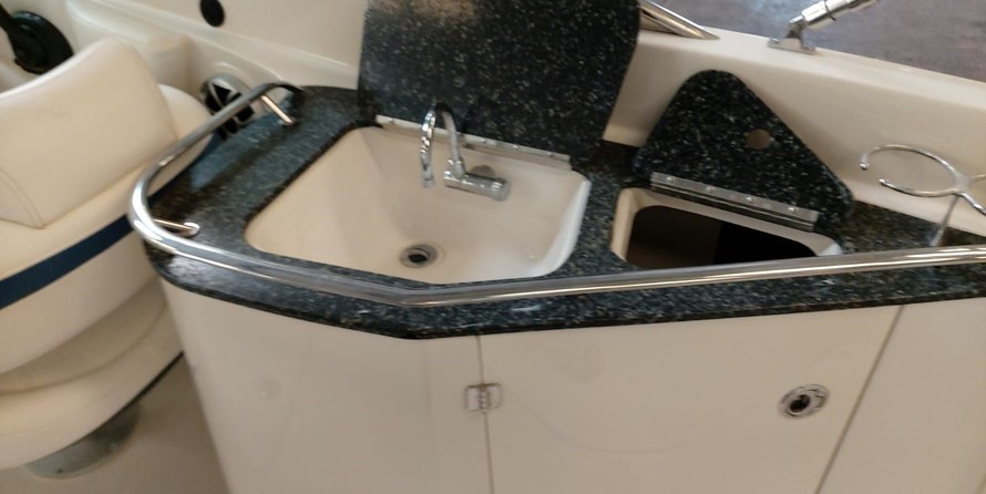 Cruising with this motorboat is great fun as it is equipped with an outside speakers and an audio system.