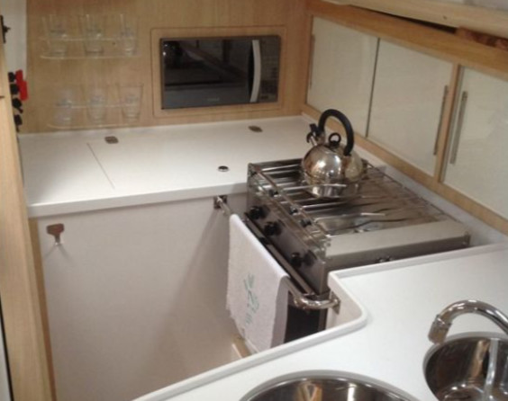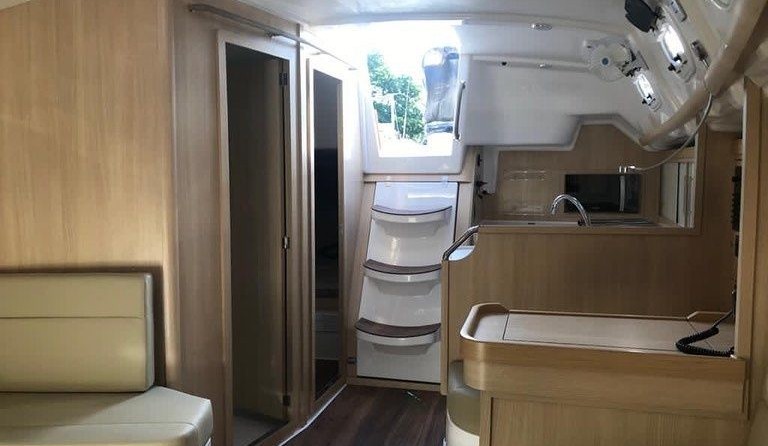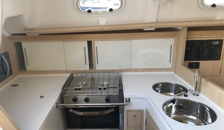Boat equipment features classical mainsail, bbq, bimini and outside gps plotter. It also boasts a flat screen tv, an audio system, outside speakers and inside speakers. The fully-equipped galley includes a microwave, oven, cooker, sink and kitchen utensils.