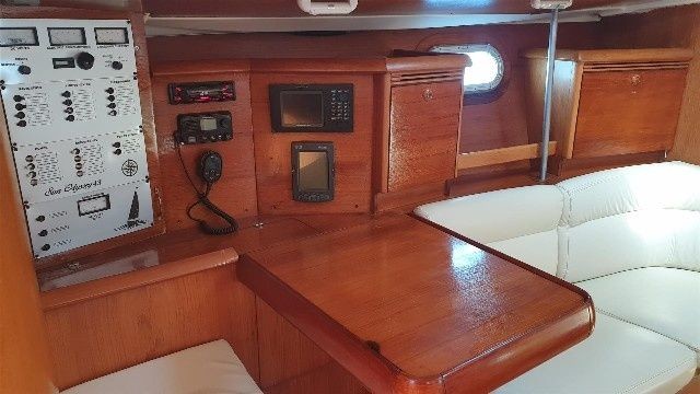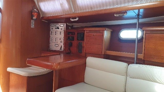 Boat equipment features rolling mainsail, solar panels, salon gps plotter and bimini. It also boasts an an audio system and inside speakers. The fully-equipped galley includes an oven, cooker, sink and kitchen utensils.