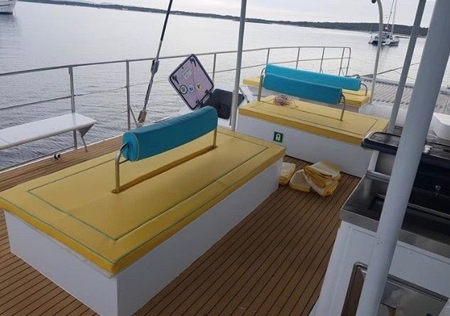 Taiti 60 is suitable for up to 71 people for a daily charter. Pillows and blankets are included in the price.