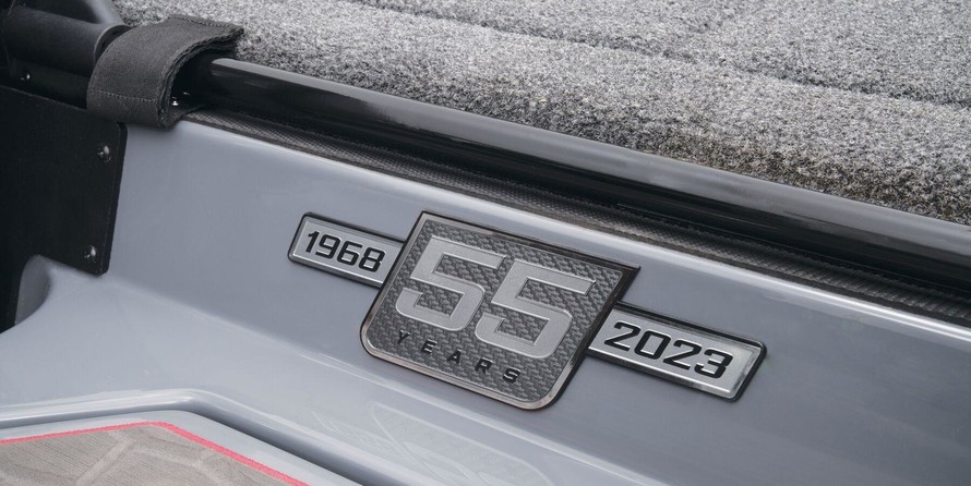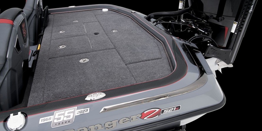 The 55th Anniversary Limited Edition Z521R and Z520R Z-Comanche boats feature the complete Ranger Cup Equipped package elevated with a one-off color scheme inside and out, commemorative 55th badging throughout, RGB carpet trim lights, custom black chrome accents, and a premium heated driver’s seat with shock-absorbing air bladders in the bottom and seat back. The trailer features custom-matched fenders, 17” black Challenger wheels, and matching smoked taillights for a complete package that’ll turn heads for another 55 years.