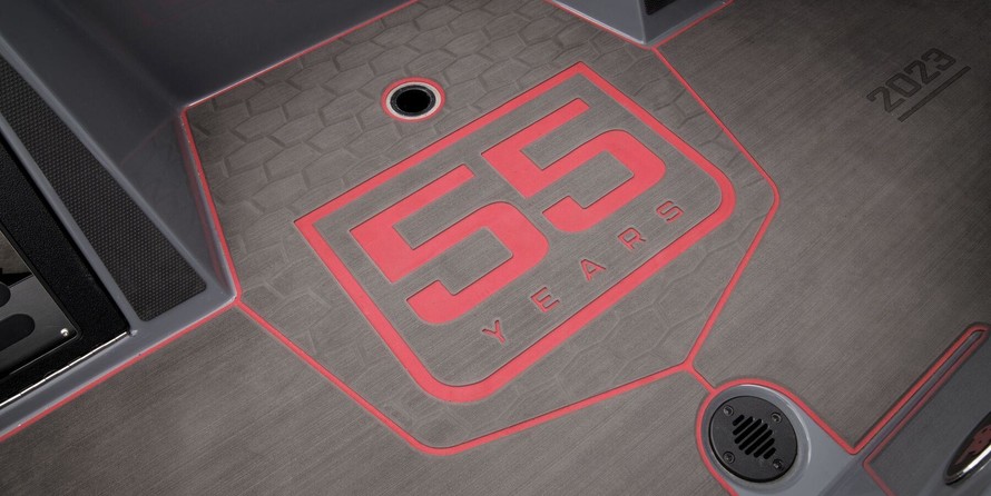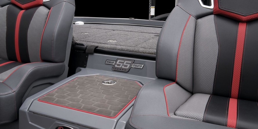 - NASCAR-inspired molded fiberglass (CCBM) seat back color matched to boat with custom 55th Anniversary graphics
