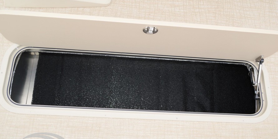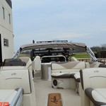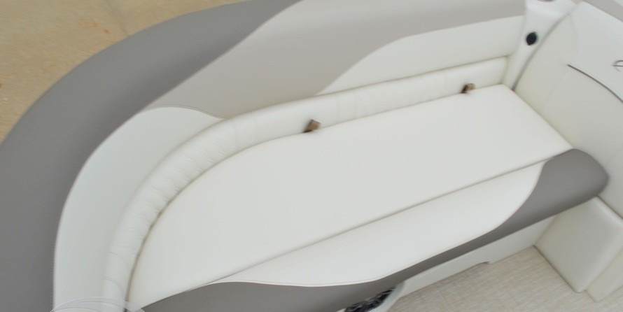 Champagne Walls Taupe Canvas Sonora Cream White Base 1 Vinyl Sonora Buckskin Base 2 Vinyl Carina Neutra Accent Vinyl White Seat Cladding Starboard Mid Back Reclining Commanders Chair Bolted Deck Upgrade Riptide Dune Flooring Livewell Under Bench Sport Performance Package In-Tube Ski Storage Locker Outboard Ski Tow Bar