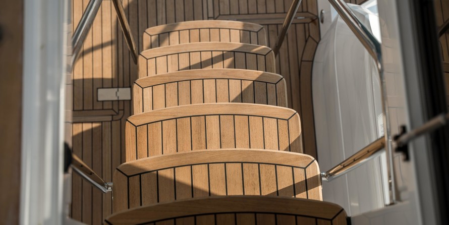 Teak cockpit, flybridge floor and bathing platform