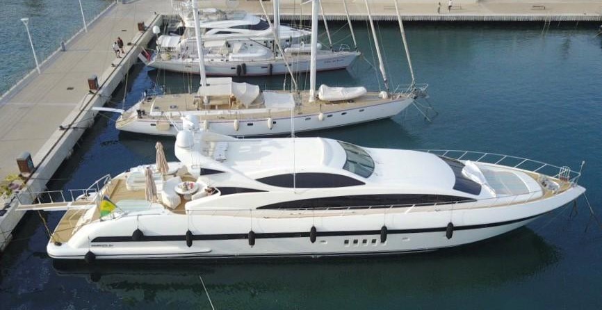 El yate a motor con capacidad para 6 invitados en 3 cabinas y un diseño exterior por Andrea Bacigalupo.