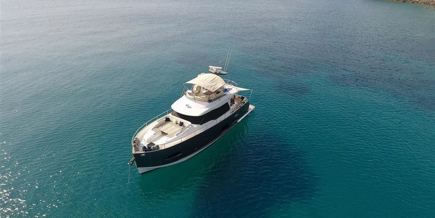 El yate a motor puede alojar a 7 personas en 4 cabinas.