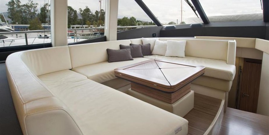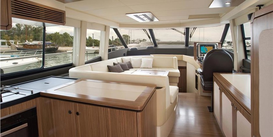 Con un haz de 4,7 m y un calado de 1,44 m, tiene un casco de GRP.