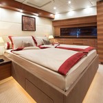 El yate a motor con capacidad para 8 invitados en 4 camarotes con un diseño de interiores por Alexandra Berger y un diseño exterior por Andrea Bacigalupo.