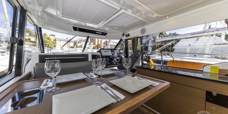Cabina de barco con techo rígido y cerrado, salón