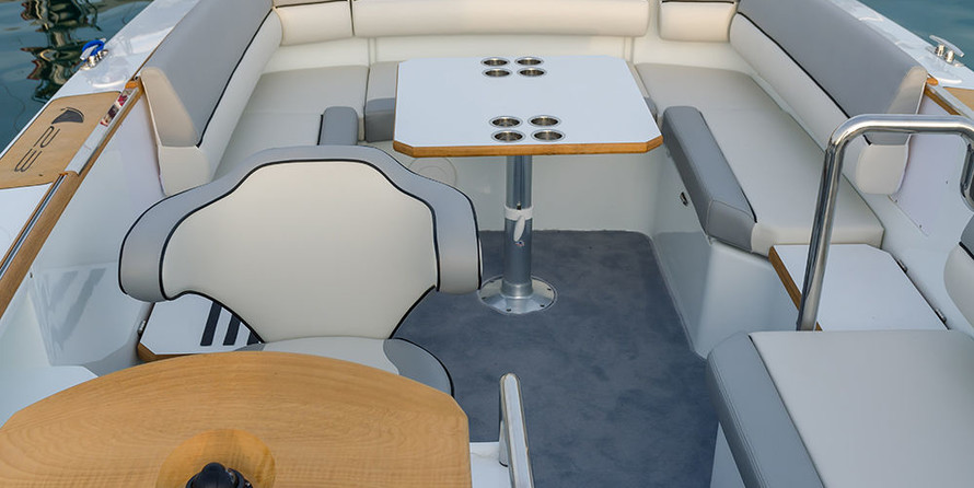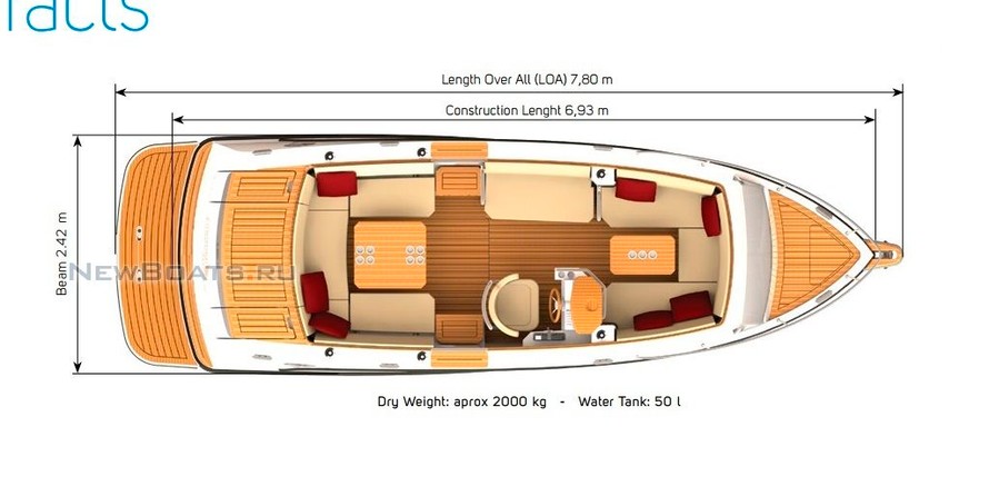 Le bateau dispose d'un confortable cockpit, qui est équipé d'un réfrigérateur et d', d'un canapé et d'un bureau. 23 Cabin a une grande plate-forme de bain avec douche et d'un escalier, d'un solarium avec des oreillers de qualité, cabine spacieuse avec deux places dans la norme et à notre propre toit de la cabine.