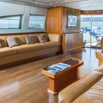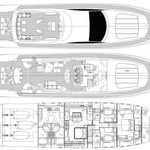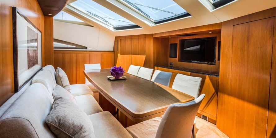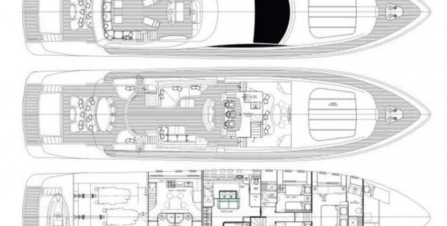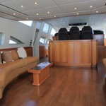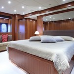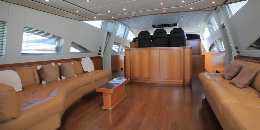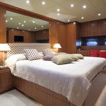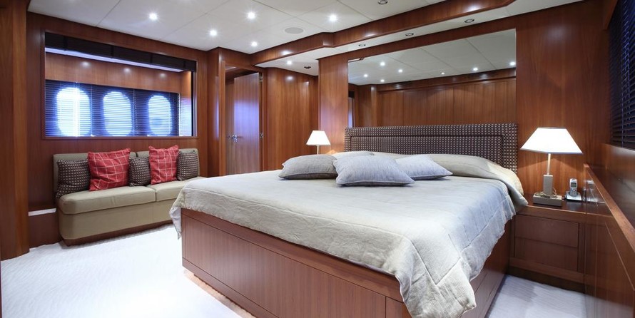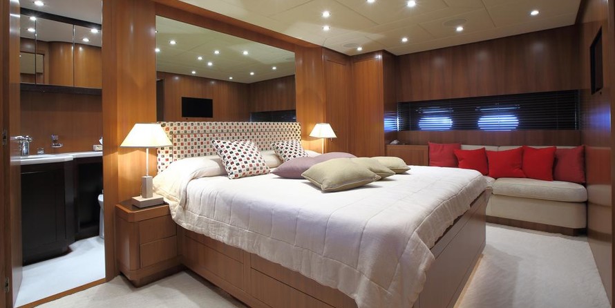 Le motor yacht peut accueillir 8 personnes dans 4 cabines avec un design d'intérieur par Rodriguez Intérieurs et un design extérieur par Andrea Bacigalupo.