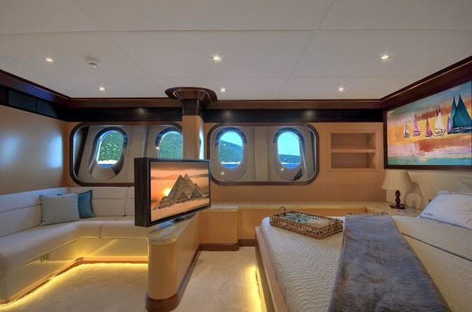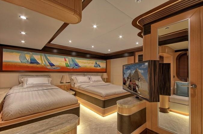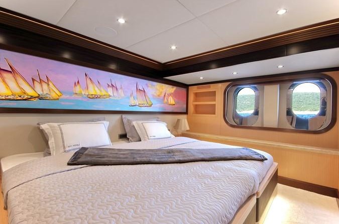 Le voilier peut accueillir 12 personnes dans 6 cabines. Le yacht a été conçu par Evan K. Marshall.