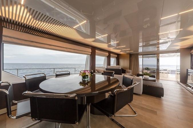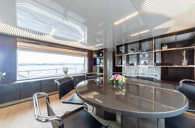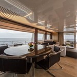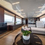 Le motor yacht peut accueillir 8 personnes dans 4 cabines. Le yacht a été conçu par Zuccon International Project.
