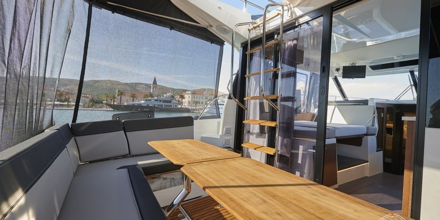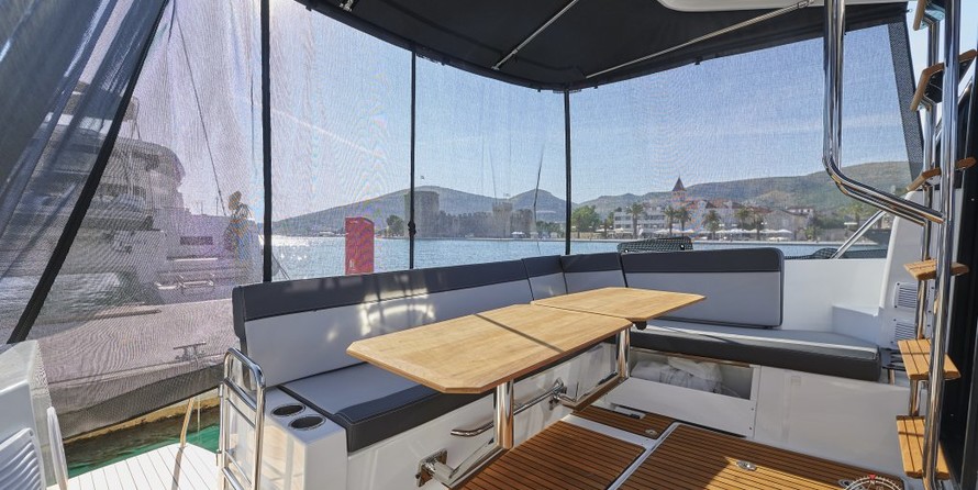 Yacht à moteur avec flybridge