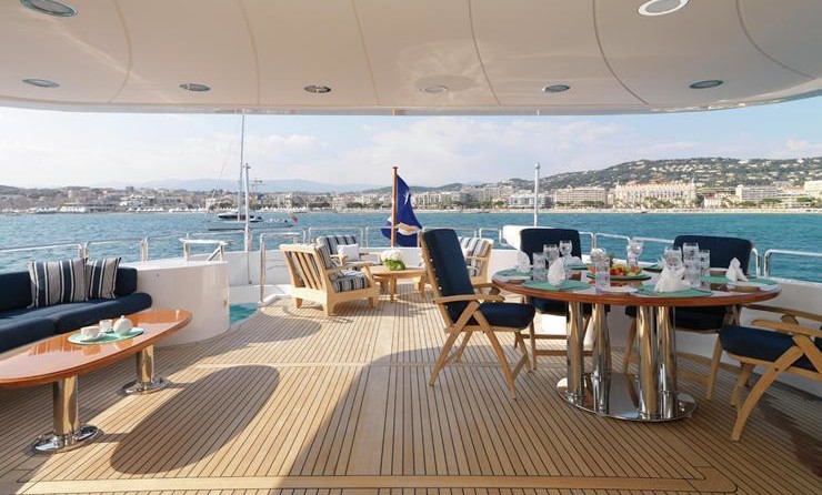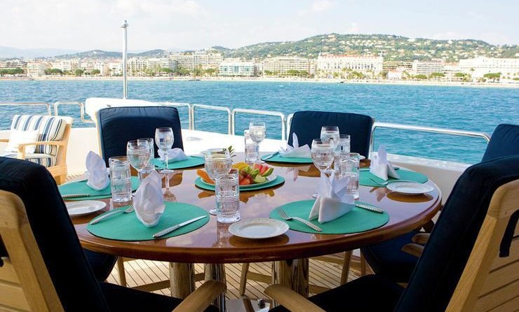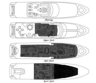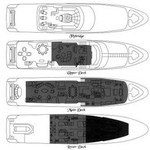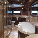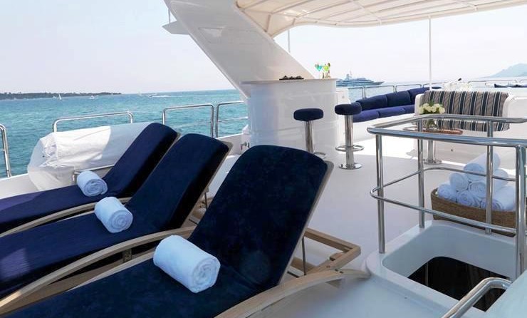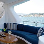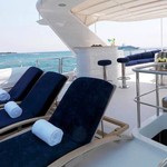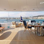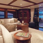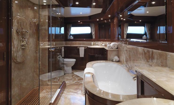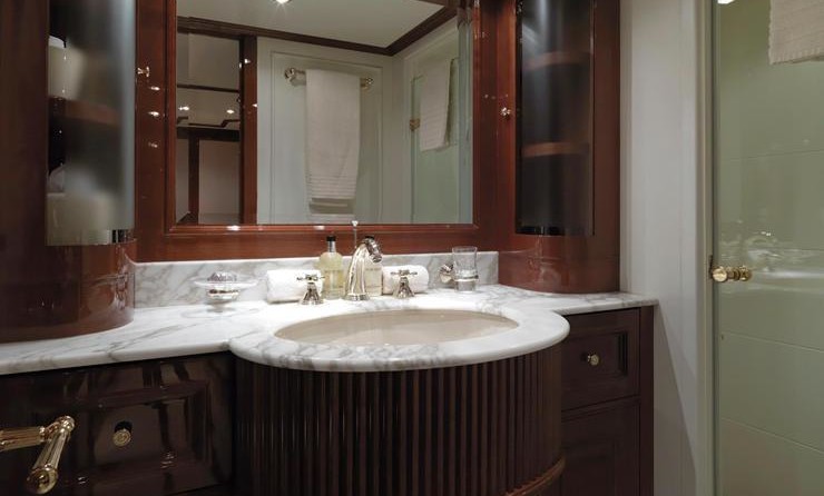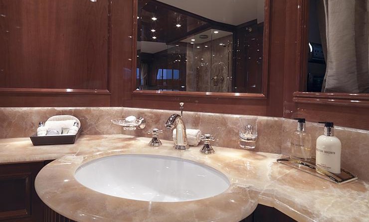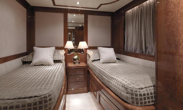 Il motor yacht può ospitare fino a 10 ospiti in 5 cabine.