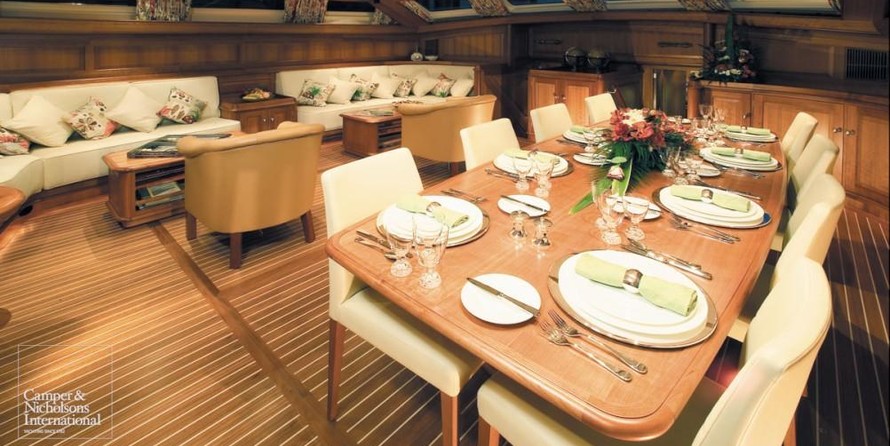 La barca può ospitare 7 persone in 3 cabine. Lo yacht è stato progettato da Hoek.