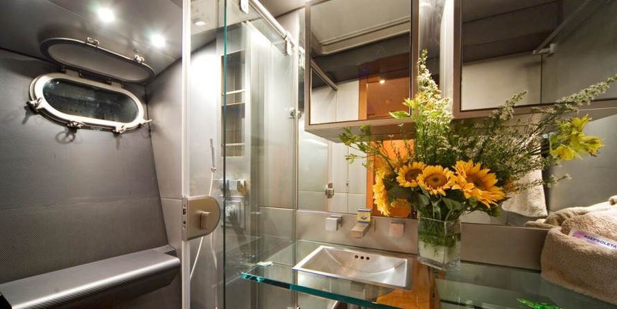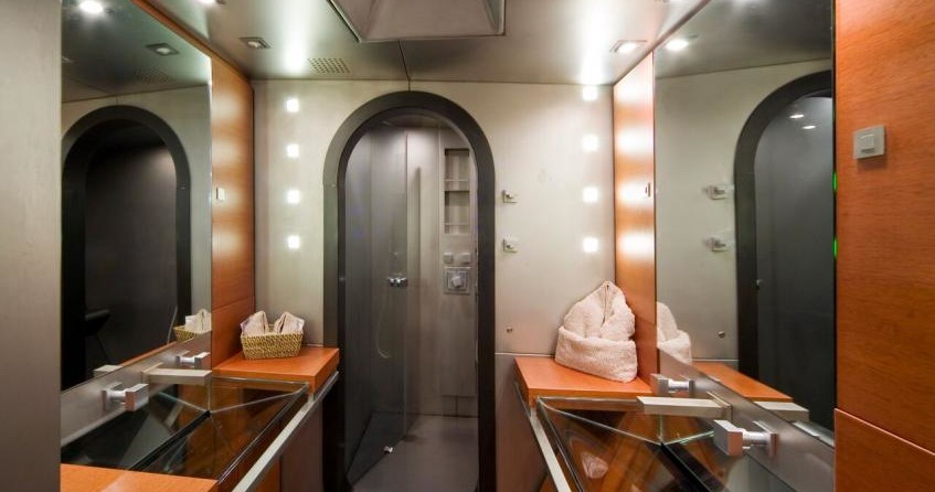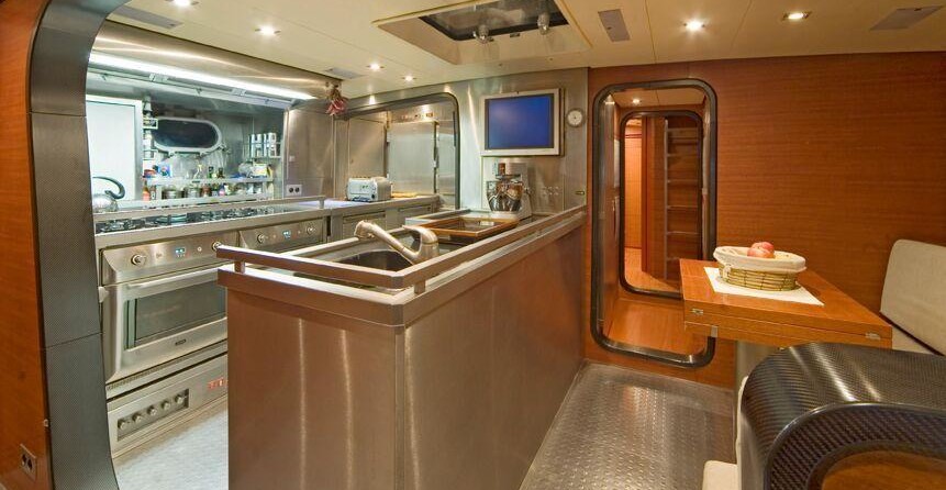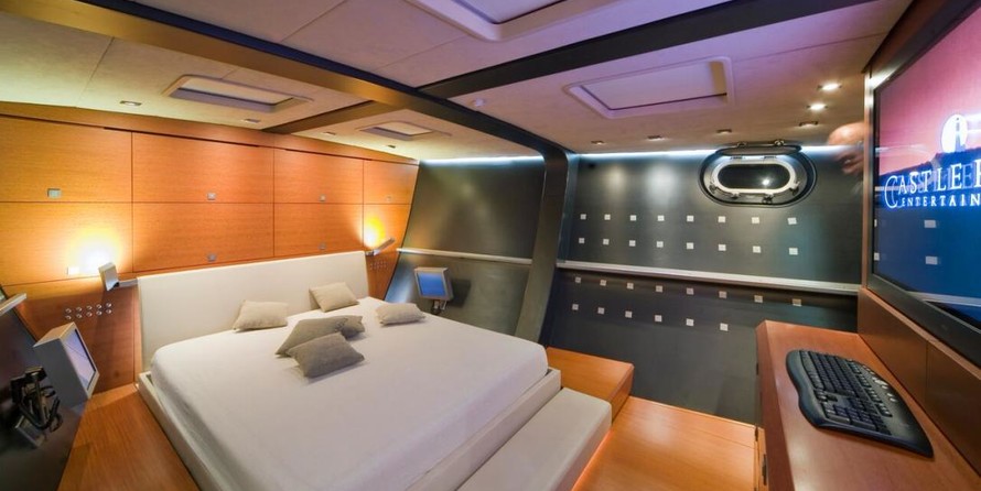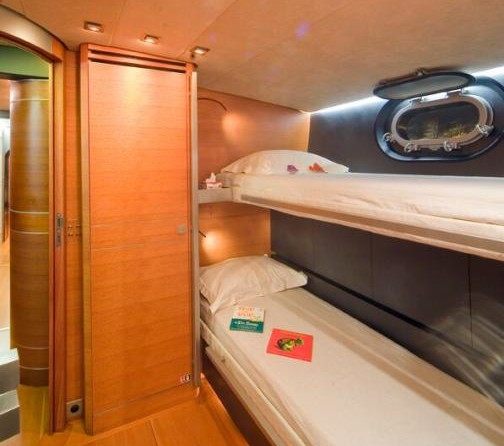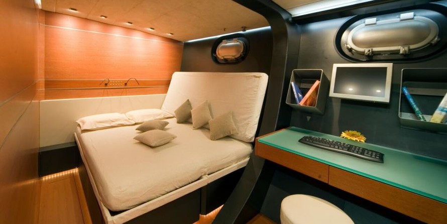 La barca può ospitare fino a 8 ospiti in 4 cabine con un design da Couedel Hugon Design e un design esterno da Scorpione Marino.