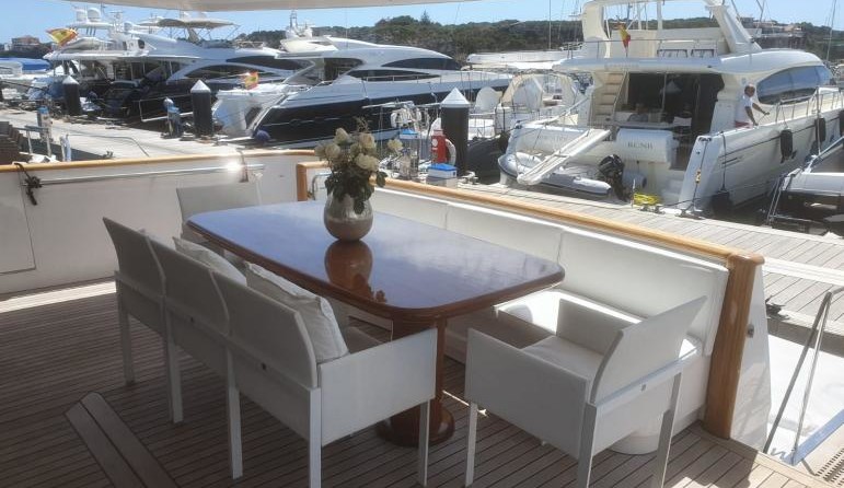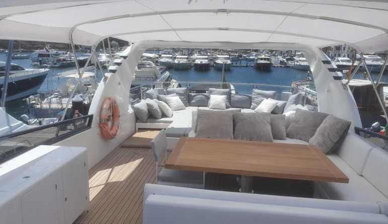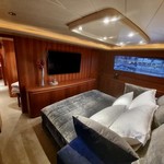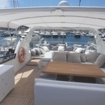 Il motor yacht può ospitare fino a 10 ospiti in 5 cabine con un interior design di Canados e un design esterno da Francesco Paszkowski.
