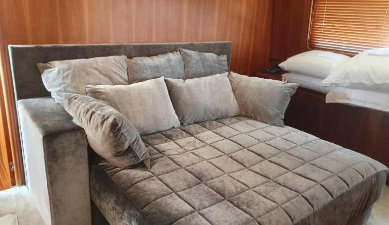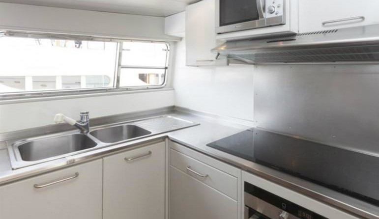 Con una trave di 6,5 m e un progetto di 1,4 m, ha un GRP scafo in VETRORESINA sovrastruttura. Questo si aggiunge ad una stazza lorda di 145 tonnellate.