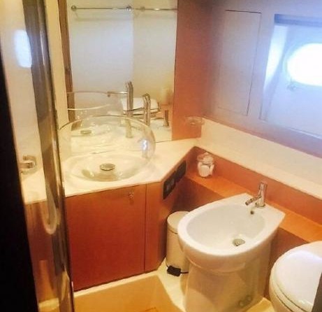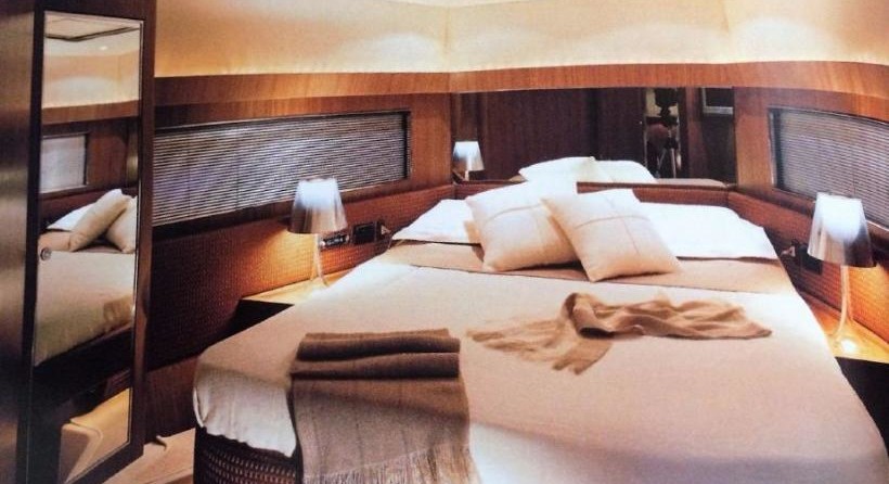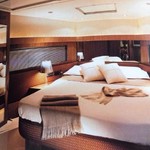 На моторной яхте могут разместиться 6 человек в 3 каютах.