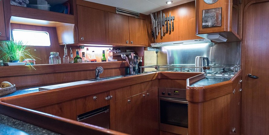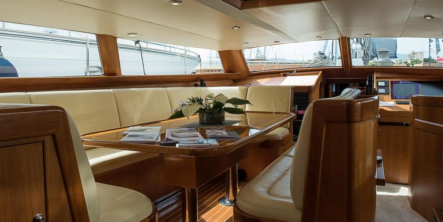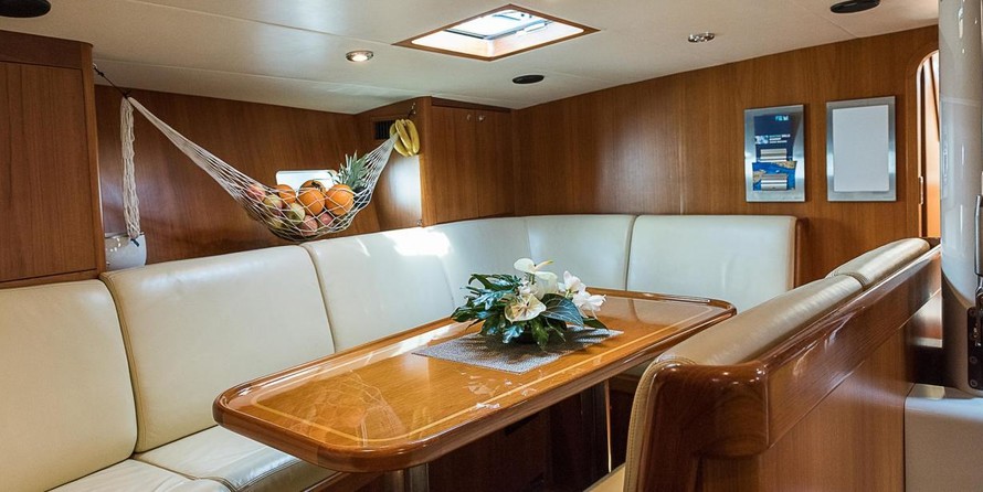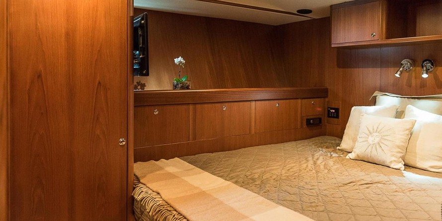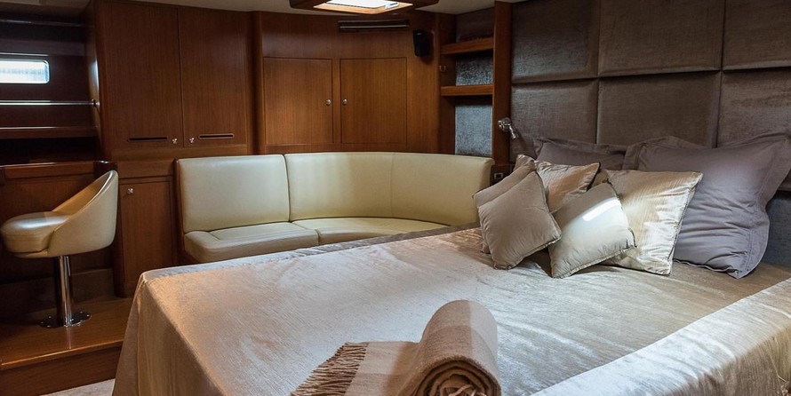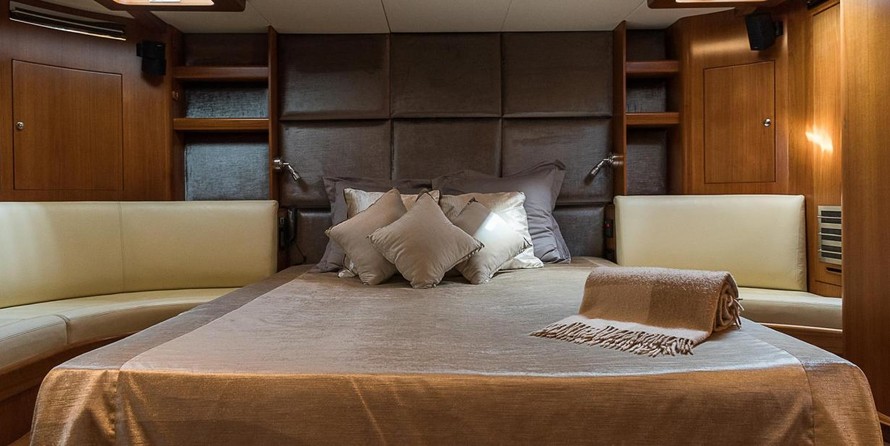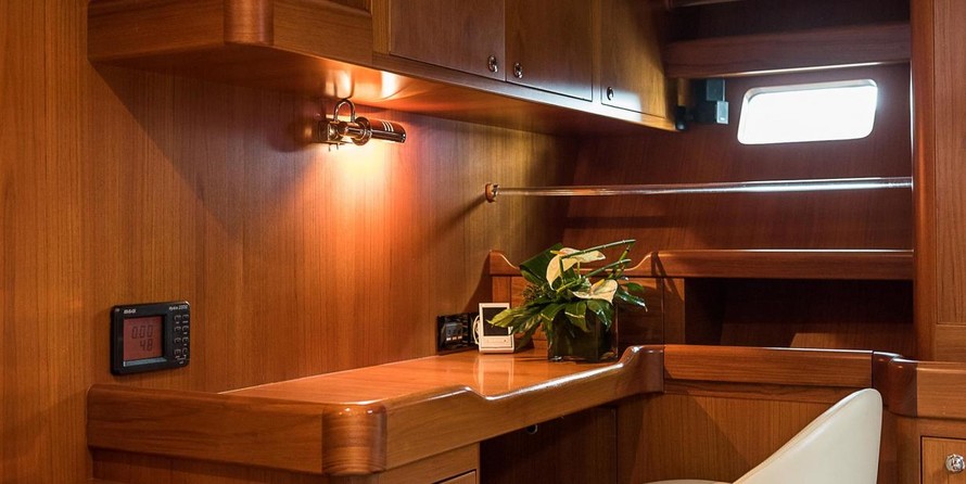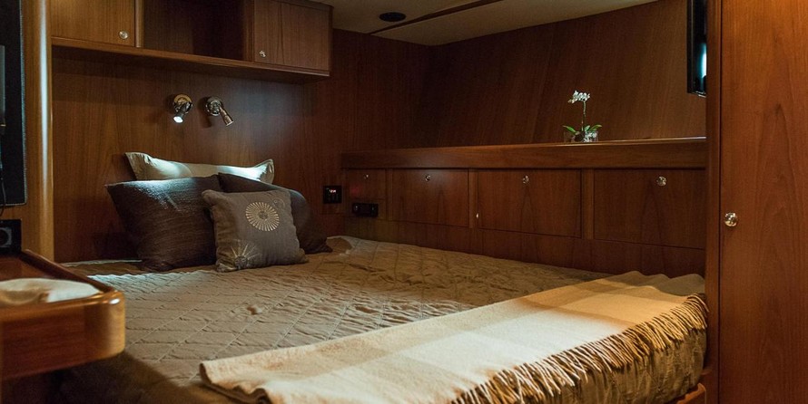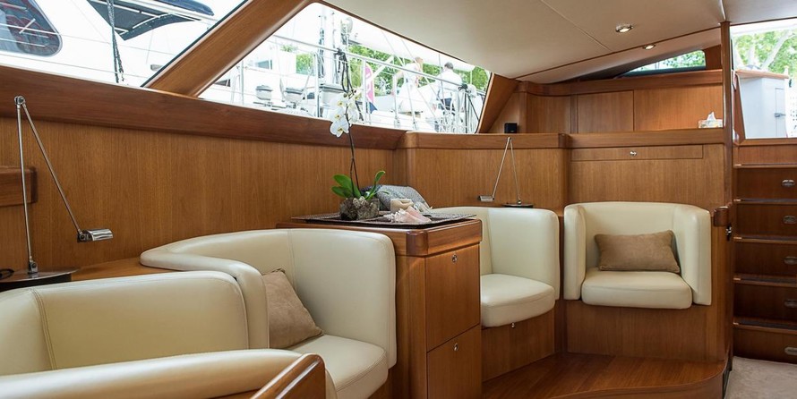 На яхте могут разместиться 6 человек в 3 каютах. Яхта спроектирована Юсси Mannerberg.