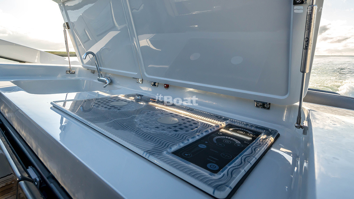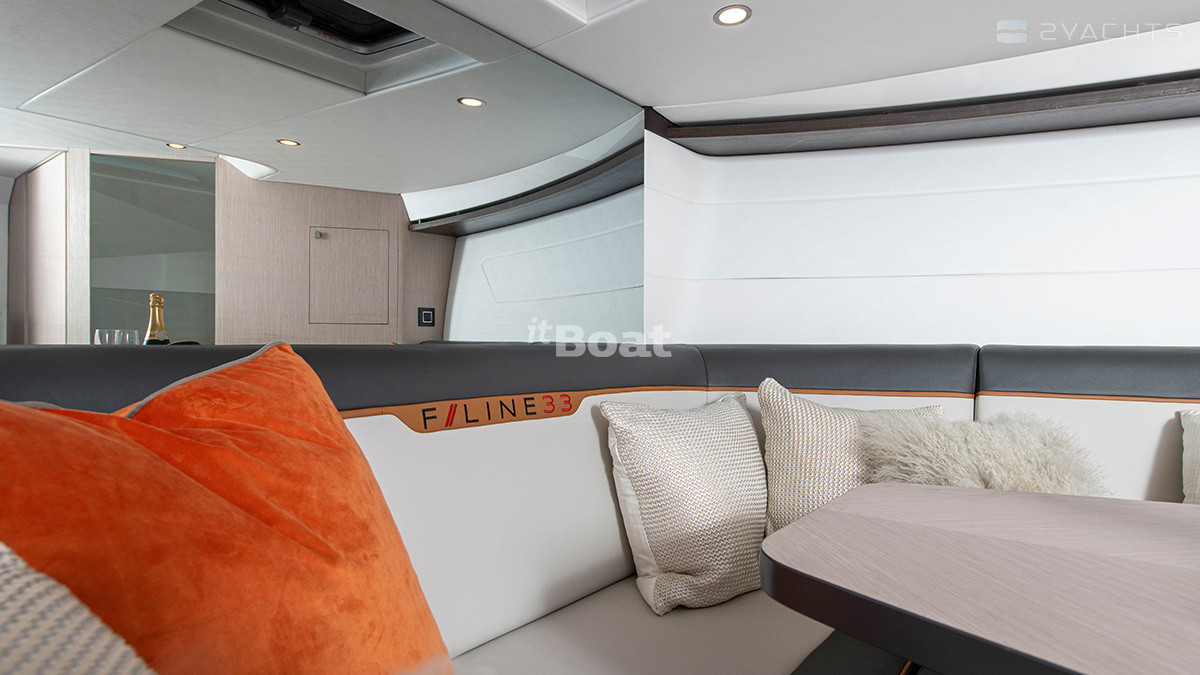 Главное преимущество новой F-Line 33 Outboard – эксплуатационная гибкость. Внушительное пространство главной палубы, сиденья кокпита, трансформирующиеся в большой лежак для загорания – позволят вашим гостям отдохнуть с комфортом. Отличная маневренность F-Line 33 Outboard на низких скоростях делает управление катером легким и простым. А открытый доступ к мощным подвесным двигателям Mercury Verado облегчит техобслуживание катера.